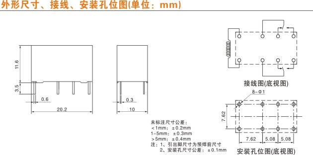 尺寸要求繼電器的體積:長、寬、高
