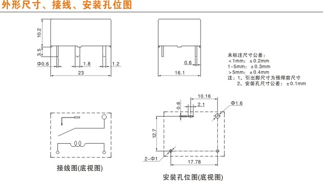 觸點形式繼電器常開或常閉(常見4、6只腳)、轉換(常見5只腳或8只腳)