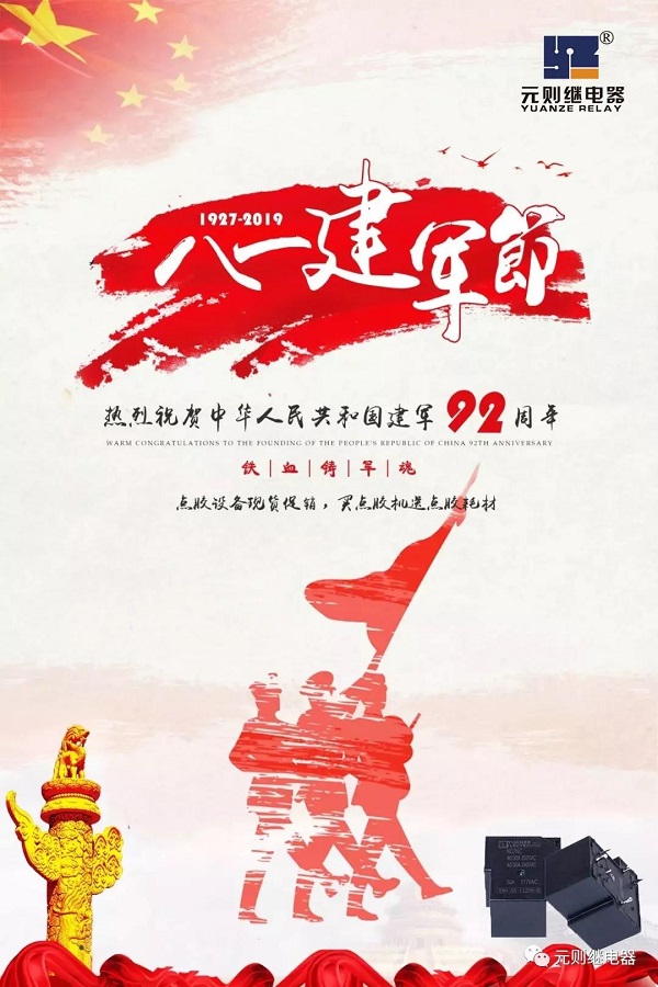 元則繼電器攜全體員工衷心祝愿中國人民解放軍:節日快樂!向偉大的中國軍人致敬!