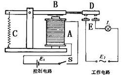 工作原理:電磁鐵通電時,把銜鐵吸下來使d和e接觸,工作電路閉合。電磁鐵斷電時失去磁性,彈簧把銜鐵拉起來,切斷工作電路。